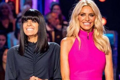 ارتدت أيقونة التلفزيون قميصًا أبيض منقطًا أنيقًا وجينزًا وأحذية رياضية أرجوانية.