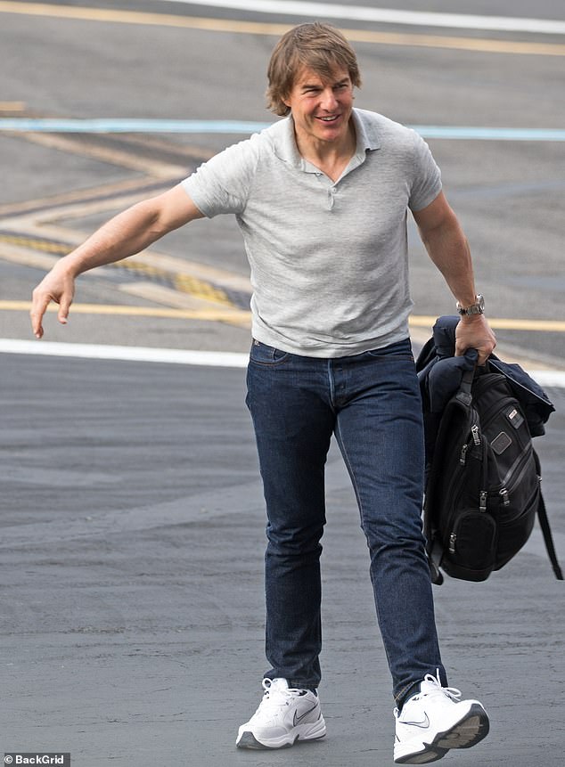 غطى توم كروز تواضعه بقميص بولو رمادي غير رسمي عند وصوله إلى مطار باترسي في لندن يوم الثلاثاء.