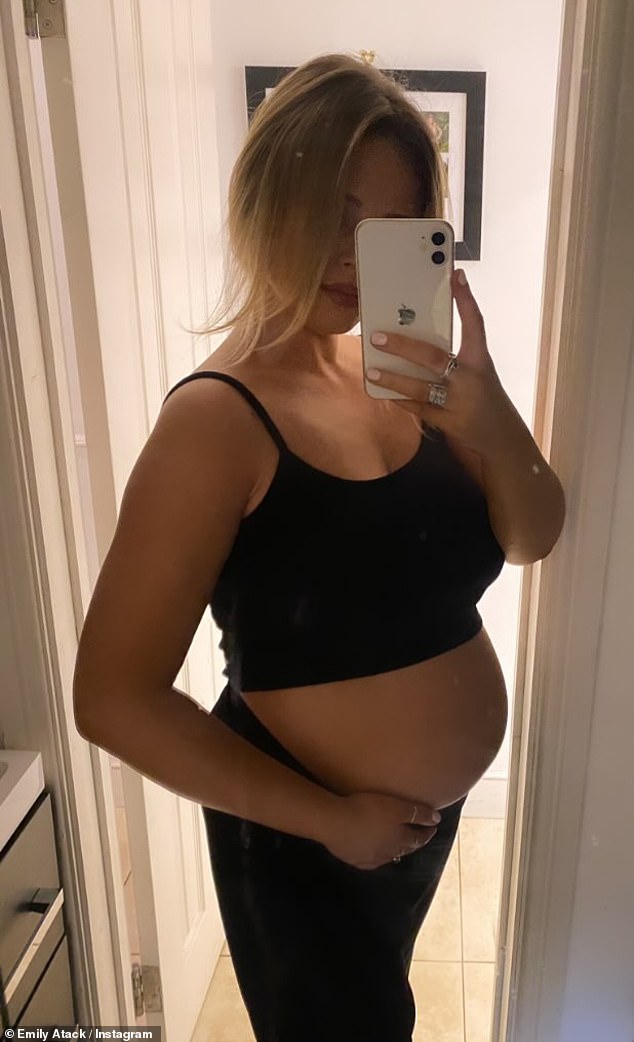 عرضت إميلي أتاك، 34 عامًا، بطنها المزدهر أثناء التقاط سلسلة من الصور يوم الجمعة