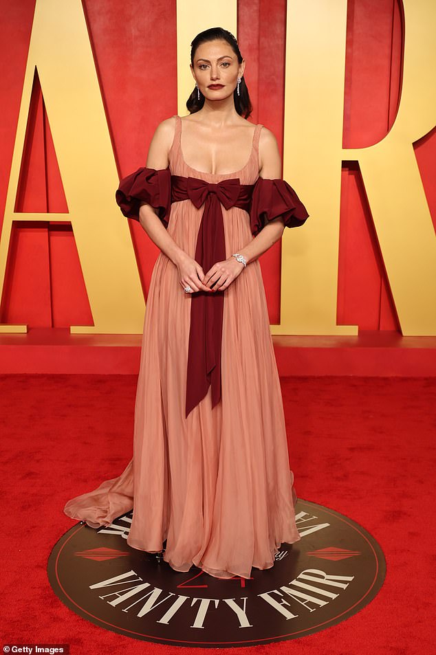 تأكدت فيبي تونكين، 34 عامًا، (في الصورة) من أن كل الأنظار كانت مسلطة عليها مساء الأحد عندما توجهت مباشرة إلى حفل فانيتي فير أوسكار لعام 2024 في ثوب مصمم مذهل