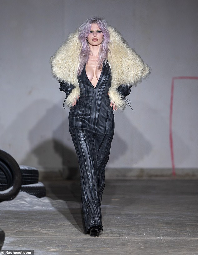 وأظهرت الممثلة البالغة من العمر 34 عامًا، والتي اشتهرت بمواعدة كاني ويست لفترة وجيزة في عام 2022، انقسامها عندما ظهرت بدون حمالة صدر في فستان أسود من الفينيل عند رفضها على المدرج في عرض أزياء Pressiat.