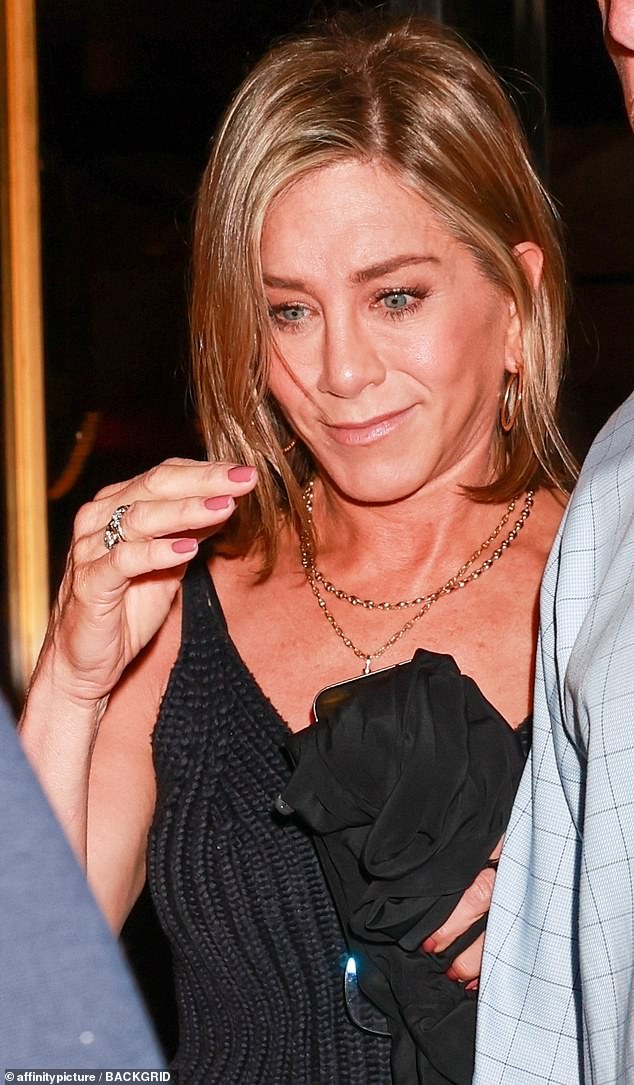 وفي الوقت نفسه، بدت شريكتها في البطولة وصديقتها المقربة جينيفر، 55 عامًا، أنيقة في قميص وتنورة سوداء وشعرت بشعر قصير.