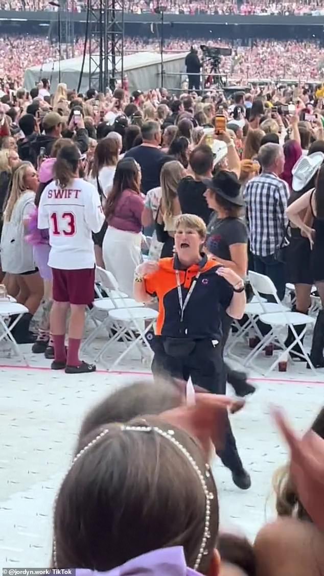 من الواضح أن ليندا تقضي وقتًا في حياتها، وهي تغني مع كلمات الأغاني بينما تتواصل بصريًا مع Swifties المبتهجة الأخرى.