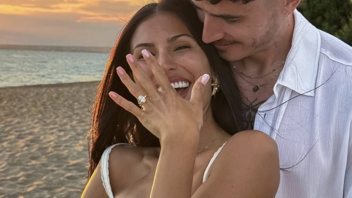 لم تستطع إميلي مسح الابتسامة من وجهها لأنها أظهرت خاتمها الماسي المبهج في ثوبها المصغر الزفاف الأبيض.