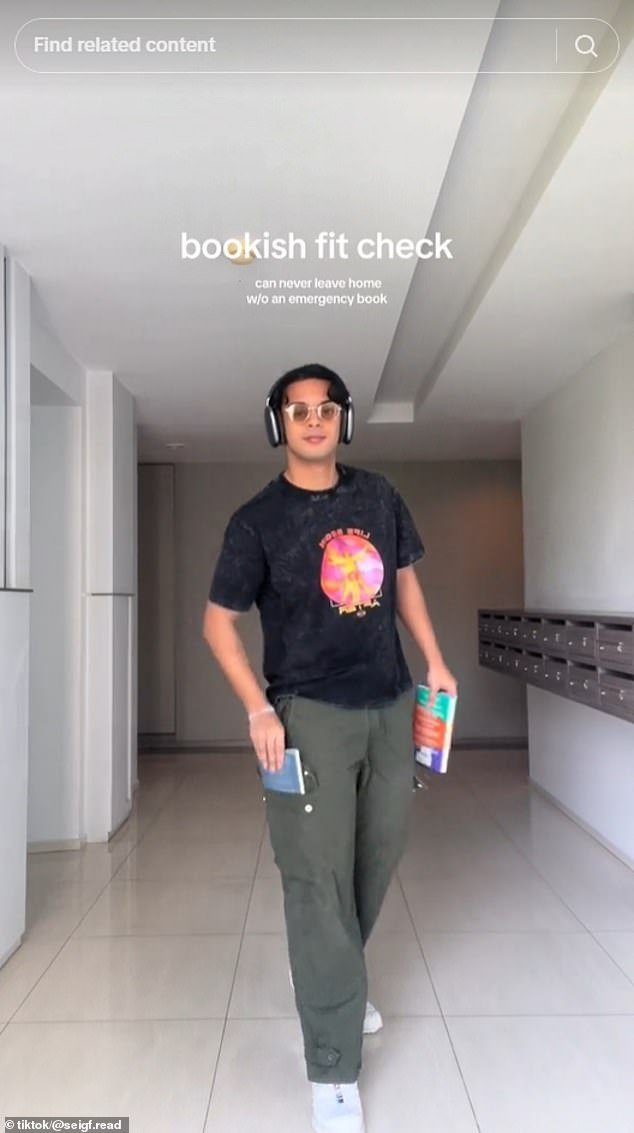 ظهر مستخدم آخر على TikTok يُدعى grandpasbookclub في مقطع فيديو مرتديًا قميصًا أبيض وبنطلونًا بحريًا، قبل أن يستدير ليكشف عن كتاب في جيبه الخلفي.