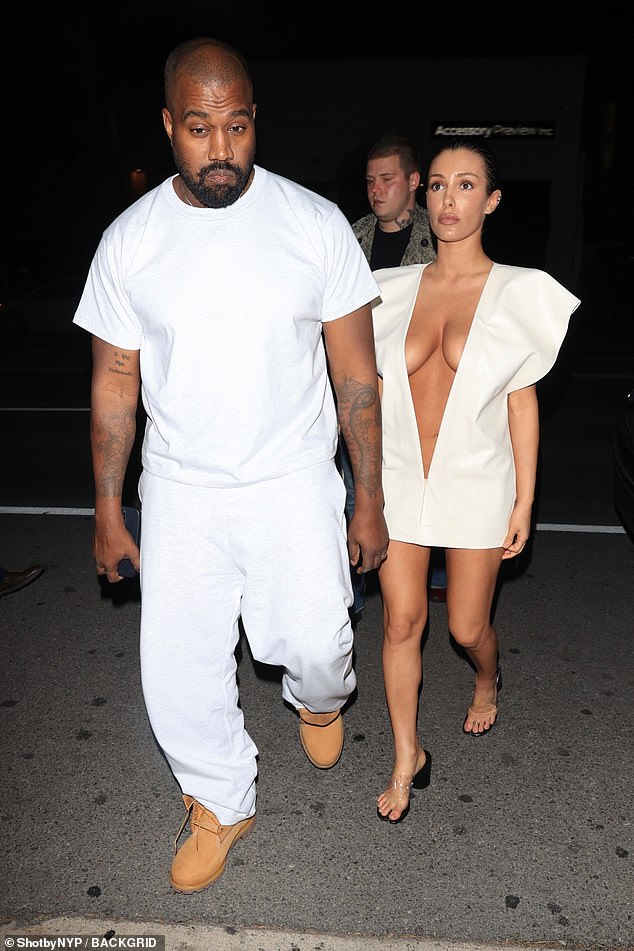 عرضت المهندسة المعمارية Yeezy أصولها الوافرة في فستان أبيض قصير عادي، والذي امتد إلى ما بعد سرتها