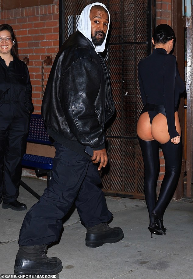 وفي يوم الثلاثاء، لم تحاول التستر حيث خرجت مرتدية جواربها الشفافة وظهرت عاريات الصدر تحت معطف فرو قصير أثناء تواجدها مع ويست.
