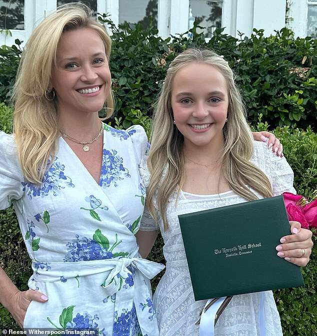 ابتهجت ريس ويذرسبون بفخر وهي تهنئ ابنة أختها على تخرجها من المدرسة الثانوية خلال عطلة نهاية الأسبوع.