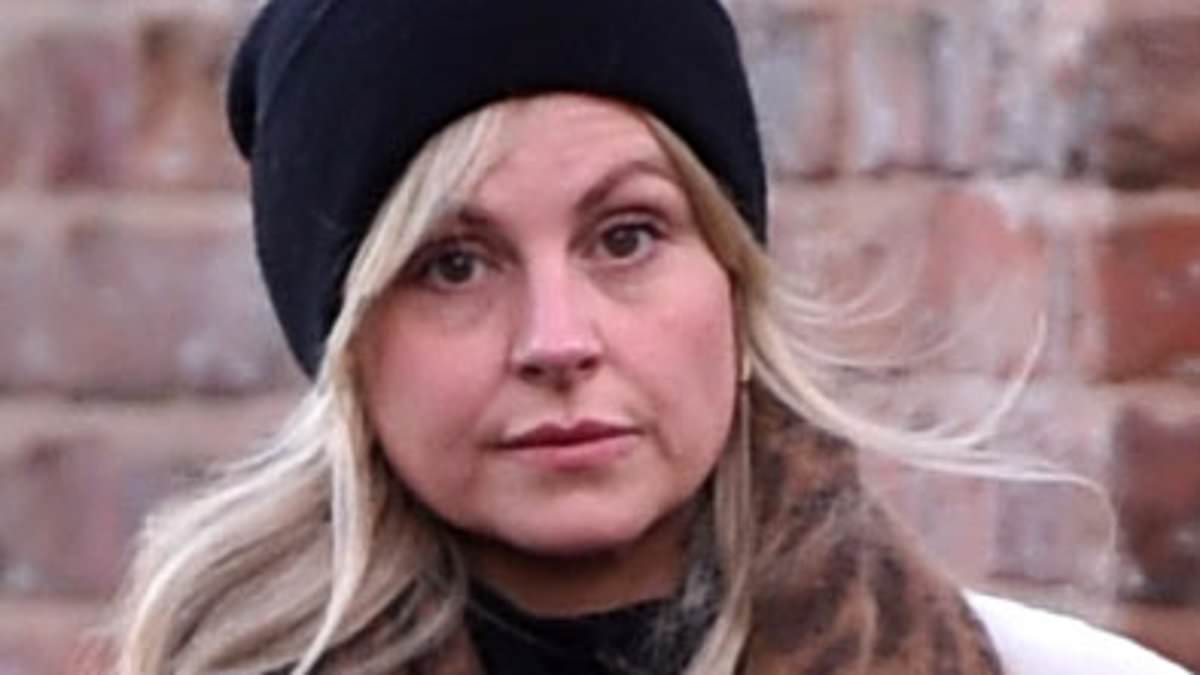 ارتدت نجمة شارع التتويج، 42 عامًا، معطفًا جلديًا بنيًا عصريًا مع حواف بيضاء مريحة أثناء خروجها في ألدرلي إيدج، شيشاير لتمشية كلبها الأليف.