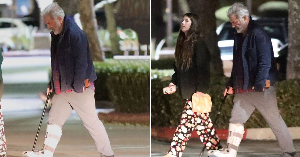 وشوهد ميل جيبسون وهو يضع قدمه في حذاء طبي وعصا للمشي بينما كان يتناول العشاء مع ابنته.