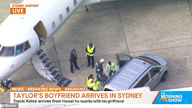 هبطت ترافيس كيلسي، 34 عامًا، في سيدني صباح الخميس لتنضم إلى سويفت، 34 عامًا، في المحطة الأسترالية من جولة Era’s Tour التي بيعت تذاكرها بالكامل بعد ركوبها من هونولولو على متن طائرتها الخاصة.