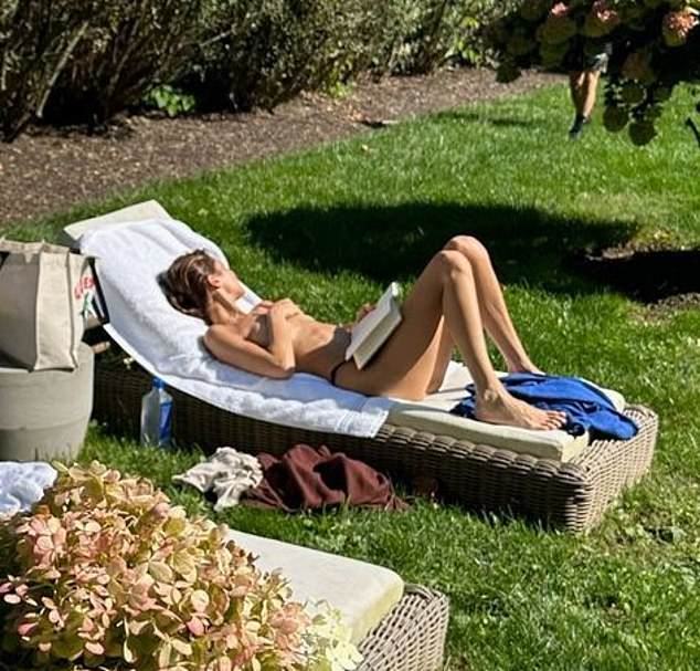 في اللقطة، أظهرت شقيقة جيجي حديد قوامها المثالي وهي مستلقية على كرسي استلقاء للتشمس، ووضعت كتابًا على حجرها وسط حديقة هادئة ومورقة.