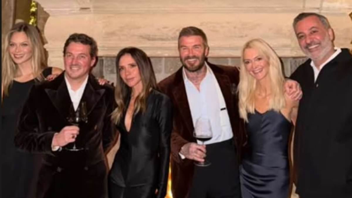 كانت فيكتوريا وديفيد بيكهام في روح الحفلة حيث رنوا في العام الجديد في منزلهم الذي تبلغ تكلفته 12 مليون جنيه إسترليني في كوتسوولدز (في الصورة مع زانا راسي وخبير الصحة جيسيكا كلارك)