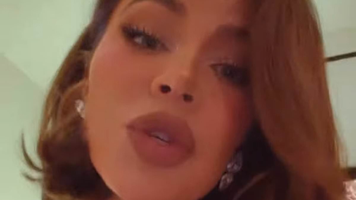 قامت مؤسسة SKIMS بتصوير فيديو سيلفي وقامت بتكبير الكاميرا على الأقراط الماسية المتدلية أثناء تألقها.