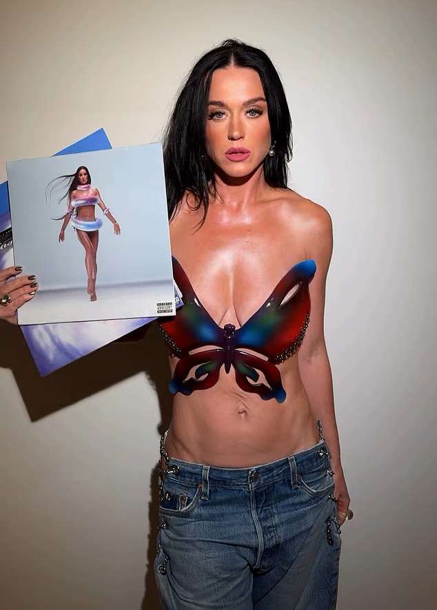 كاتي بيري تخلع ملابسها وترتدي قميصًا قصيرًا على شكل فراشة للترويج لألبومها الجديد 143