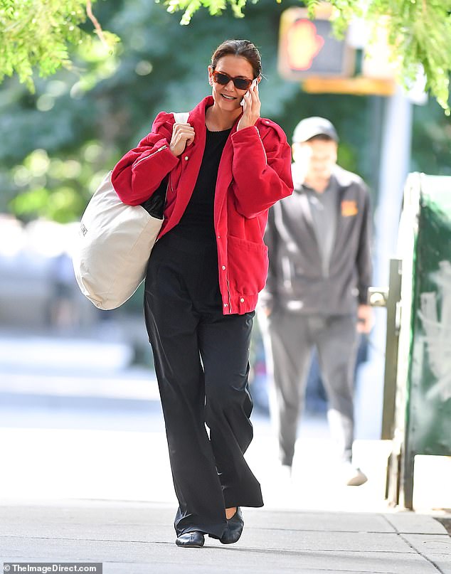 بدت كاتي هولمز، البالغة من العمر 45 عامًا، في مزاج رائع عندما تم تصويرها وهي تمشي في مدينة نيويورك بعد ظهر يوم الاثنين