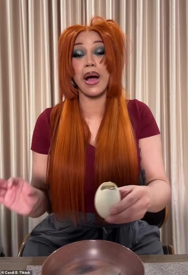 وضعت مغنية WAP، البالغة من العمر 31 عامًا، وجهها “اللعبي” أثناء تجربتها لبيضة البط المخصبة. “لقد كنت أرى هذا منذ فترة طويلة، إنه يسمى بالوت.” قالت: لقد فهمت ذلك، فلنجربه ونقيمه من 1 إلى 10.
