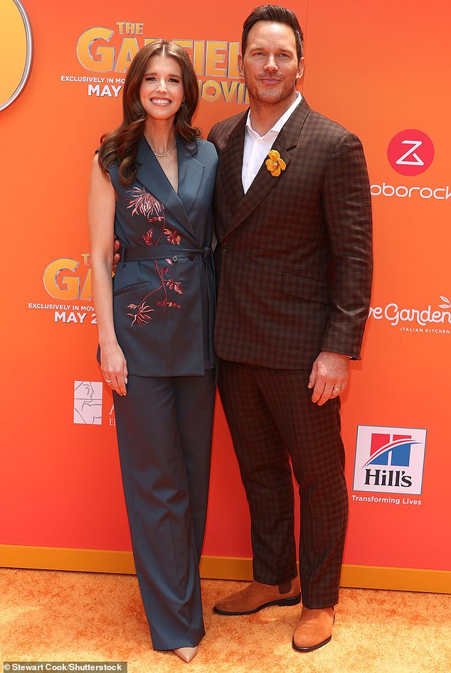 كان كريس برات مدعومًا من زوجته كاثرين شوارزنيجر بينما كان يقود الطريق في العرض الأول لفيلم The Garfield Movie Sunday في هوليوود.