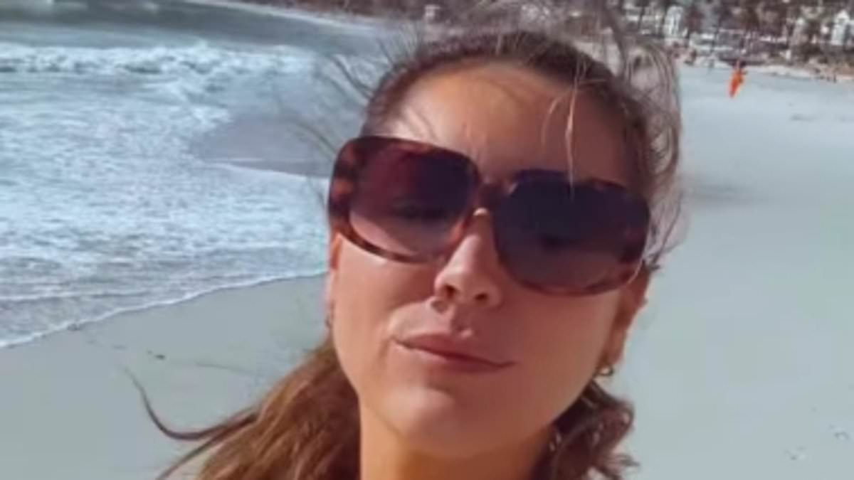 ثم توجهت إلى الشاطئ مع مجموعة من أصدقائها بينما كانت تركض على طول الشاطئ وتلتقط صور سيلفي ممتعة