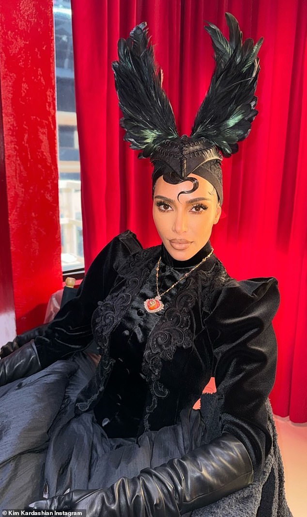 لجأت كيم كارداشيان، 43 عامًا، إلى إنستغرام وهي ترتدي غطاء رأس على شكل جناح غراب بينما كانت ترتدي زيًا لفيلم American Horror Story حيث شكرت معجبيها على دعمهم يوم السبت.