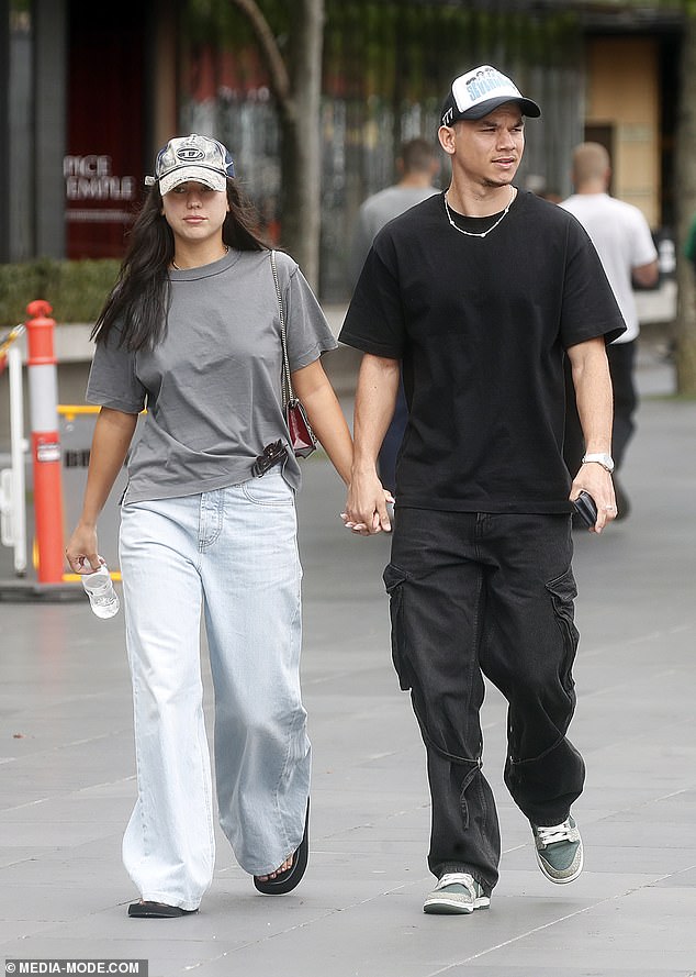 بدا لاعب كرة القدم الأسترالية دانييل ريولي وشريكته باريس لورانس في حالة حب صباح يوم الاثنين عندما ذهبا في نزهة عبر ملبورن قبل ميدالية براونلو.