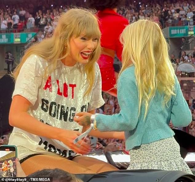 وبعد ذلك، ظهرت تايلور وهي تقول للفتاة الصغيرة “أنا أحبك”، بينما كانت تسير عائدة للانضمام إلى بقية راقصيها على المسرح لمواصلة الأغنية.