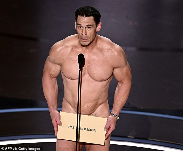 من المؤكد أن جون سينا، 46 عاماً، ترك انطباعاً جيداً عندما ظهر عارياً على خشبة المسرح في مسرح دولبي في لوس أنجلوس لتقديم جائزة أفضل تصميم أزياء في حفل توزيع جوائز الأوسكار لعام 2024 الأحد.