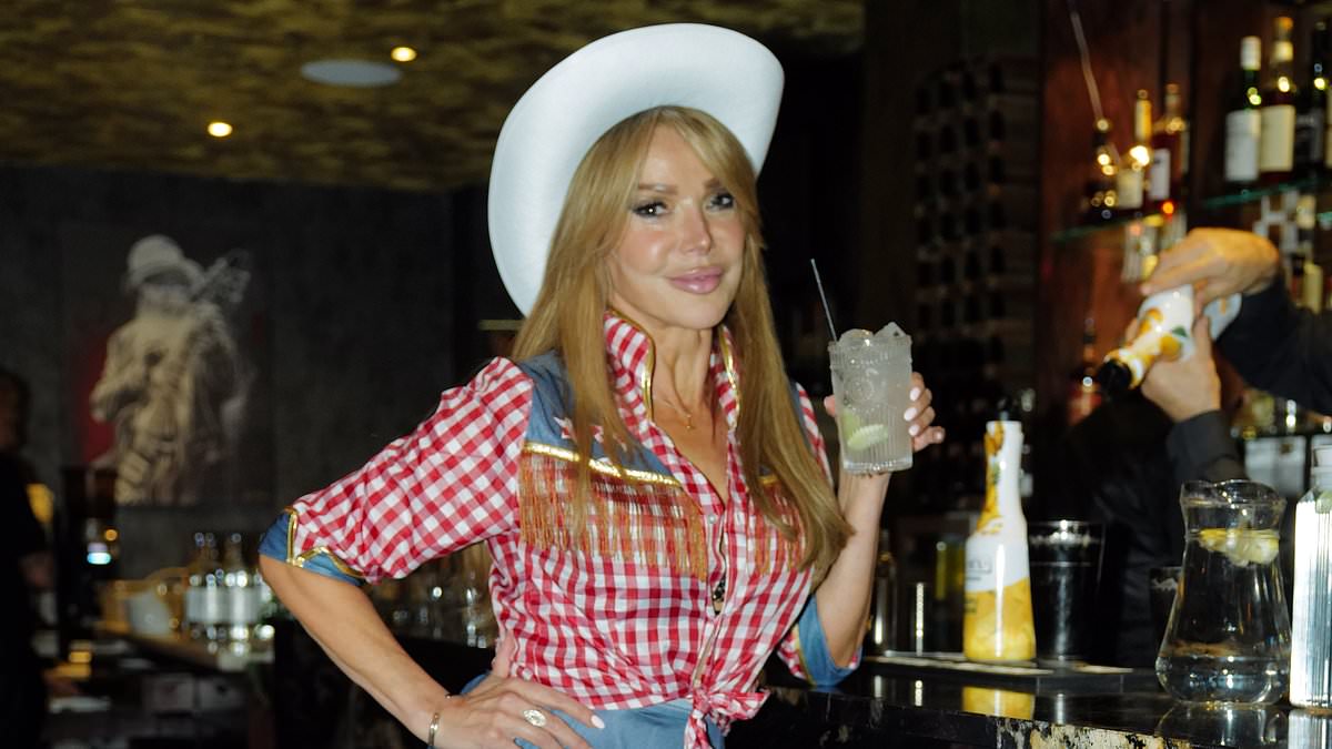 لهذه المناسبة، لفتت ليزي الأنظار في طقم مرح مستوحى من راعية البقر، يتميز بتنورة قصيرة زرقاء مكشكشة أظهرت ساقيها المتناغمتين وقميصًا أحمر مربعات.