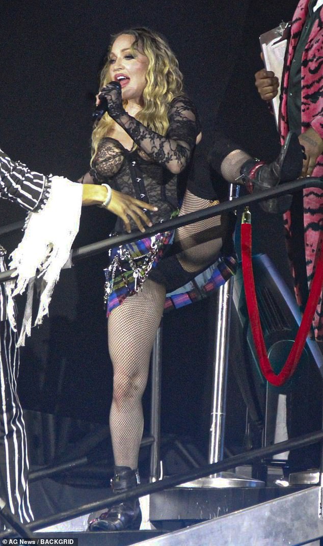 بدت ملكة البوب، البالغة من العمر 65 عامًا، مذهلة عندما صعدت إلى المسرح مرتدية ملابس داخلية من الدانتيل وتنورة صغيرة منقوشة، وألقت نظرة على الملابس الداخلية تحتها خلال روتين بذيء.