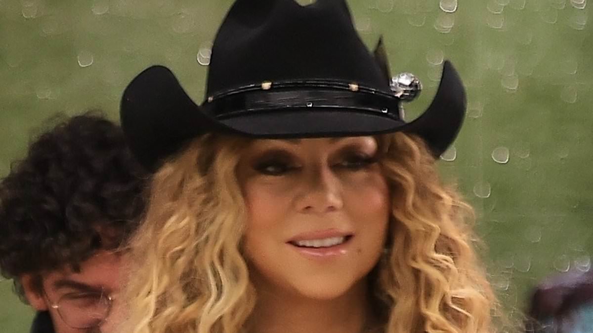 ماريا كاري تتألق بفتحة صدرها في سترة لامعة وقبعة رعاة البقر قبل أن تتبختر بأغراضها في معطف فرو جلام في أسبن