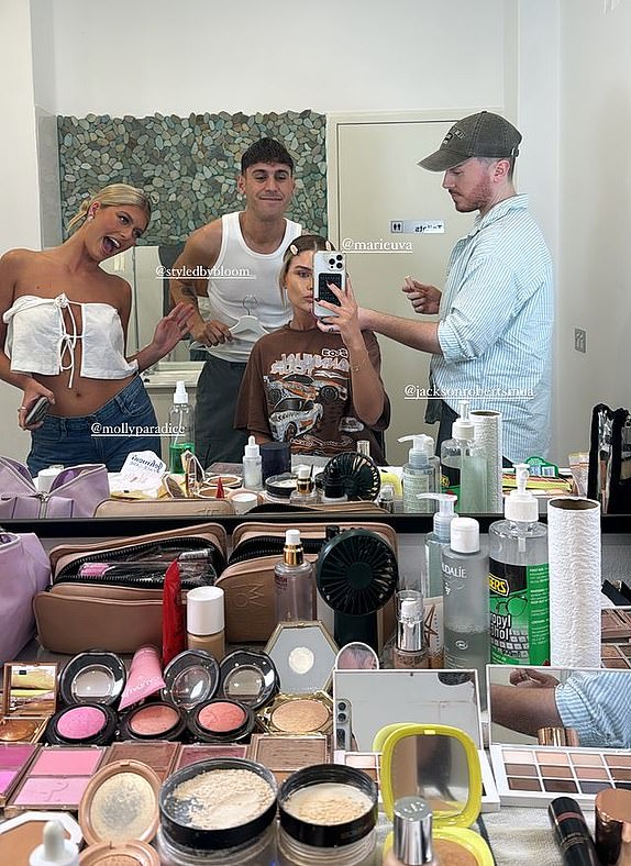 وسارع المعجبون ذوو العيون الثاقبة إلى رصد جيمس في خلفية غرفة فندق آدا في سيدني بينما كانت تشارك لقطات من استعداداتها لليلة الكبيرة.
