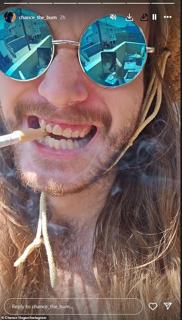 بدا شانس غير قابل للتعرف عليه بشعره البني الطويل ونظارته الشمسية الزرقاء وسيجارة بين أسنانه الملطخة بينما بدت لثته ملتهبة.