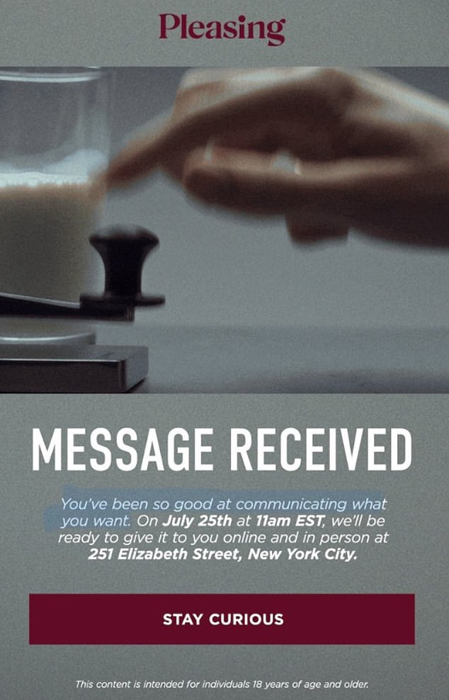 “لقد كنت جيدًا في توصيل ما تريده” ، تم إرسال بريد إلكتروني إلى المشتركين ، حيث كشفت العملاء عن شراء الإطلاق الجديد عبر الإنترنت أو شخصيًا في 251 Elizabeth Street ، NYC