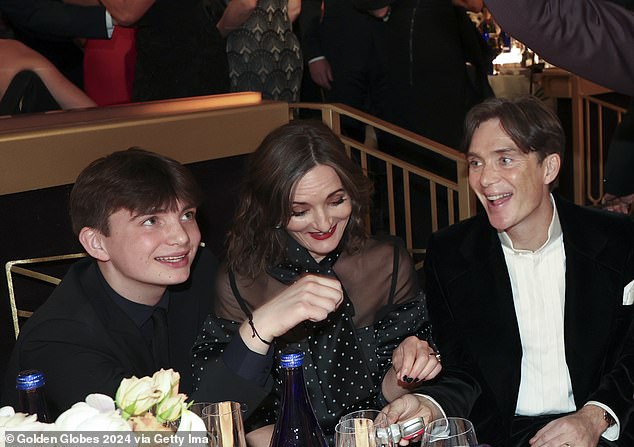 يشارك نجم أوبنهايمر، 47 عامًا، آران، 16 عامًا، وابنه الأكبر ملاخي، 18 عامًا، مع زوجته إيفون ماكجينيس.