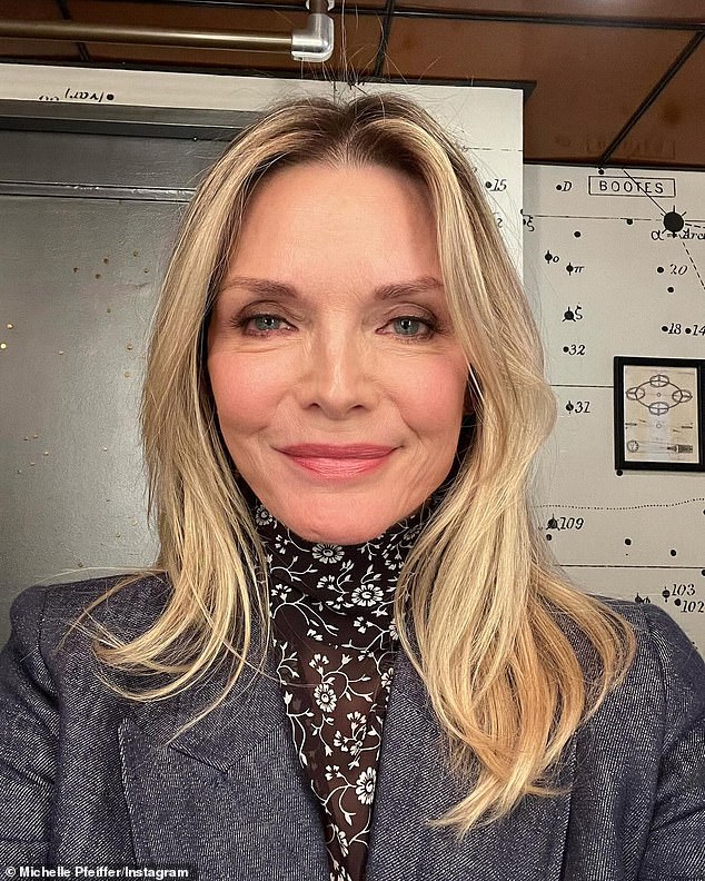 وتألقت ميشيل فايفر في سترة ذات ياقة عالية من الزهور تحت سترة رمادية لالتقاط صورة شخصية لها، وعلقت عليها بمرح: “أحد سعيد للجميع!”.