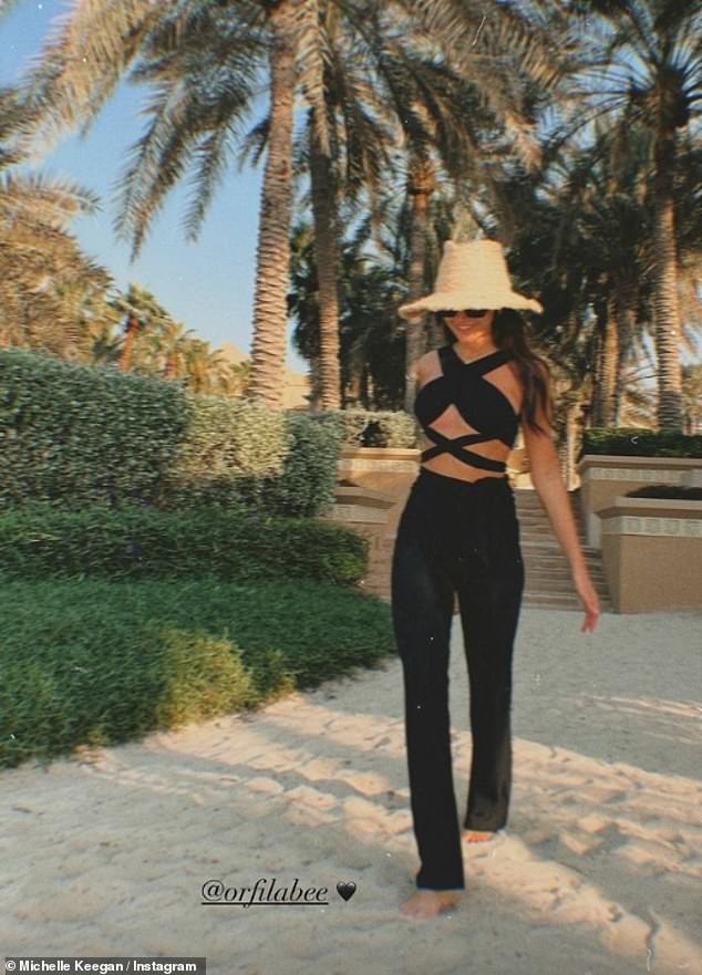 أظهرت ميشيل كيغان شخصيتها المذهلة في ملابس السباحة السوداء أثناء سيرها على طول الشاطئ لالتقاط صورة على إنستغرام يوم الخميس.