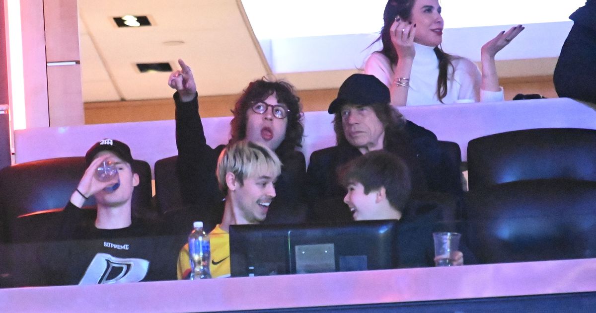 شوهد ميك جاغر عضو فريق رولينج ستونز مع أحد أطفاله الثمانية ليلة السبت. كان هو ولوكاس متطابقين أثناء جلوسهما في مقصورة كبار الشخصيات في إحدى مباريات كرة السلة في مدينة نيويورك
