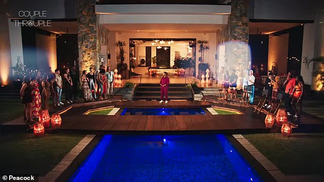 يتم استضافة برنامج Couple to Throuple من قبل رجل مبتسم دائمًا يُدعى سكوت إيفانز (الذي يقرع الجرس للإشارة إلى تغييرات المشهد) وشاميرا هوارد “خبير الجنس” (أعلاه) – دكتور درو في ممارسة الجنس.