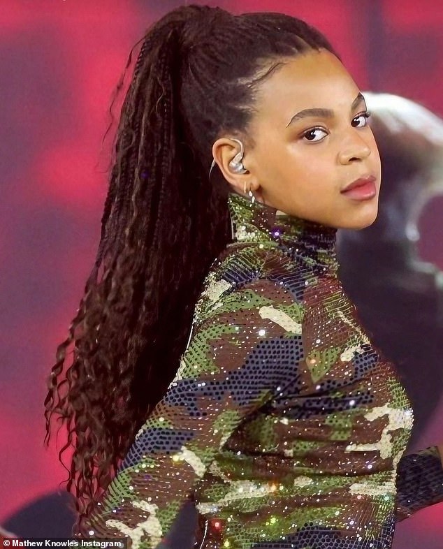 نشرت مديرة شركة Destiny’s Child السابقة صورة قريبة للطفلة البالغة من العمر اثني عشر عامًا على خشبة المسرح وهي ترقص مرتدية زيًا مموهًا متلألئًا.