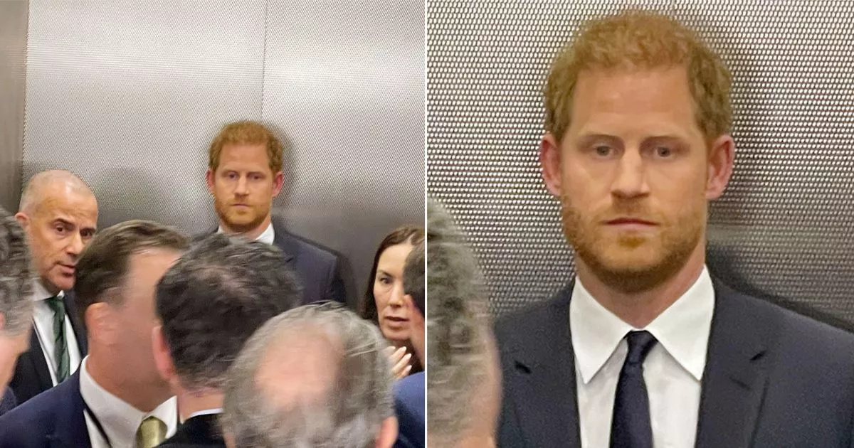 يبدو الأمير هاري محبطًا في المصعد المزدحم في حدث اتحاد كرة القدم الأميركي بعد رحلة استغرقت 26 ساعة لرؤية تشارلز