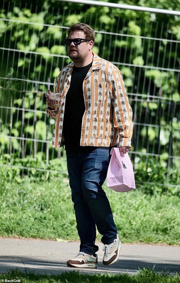 أكمل جيمس المجموعة بارتداء الجينز والأحذية الرياضية حيث شوهد وهو يتناول وجبة الإفطار والقهوة من Joe & The Juice أثناء النزهة.