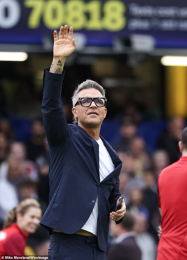 تم تشجيع روبي ويليامز من قبل زوجته عايدة فيلد وأطفالهم في Soccer Aid يوم الأحد.
