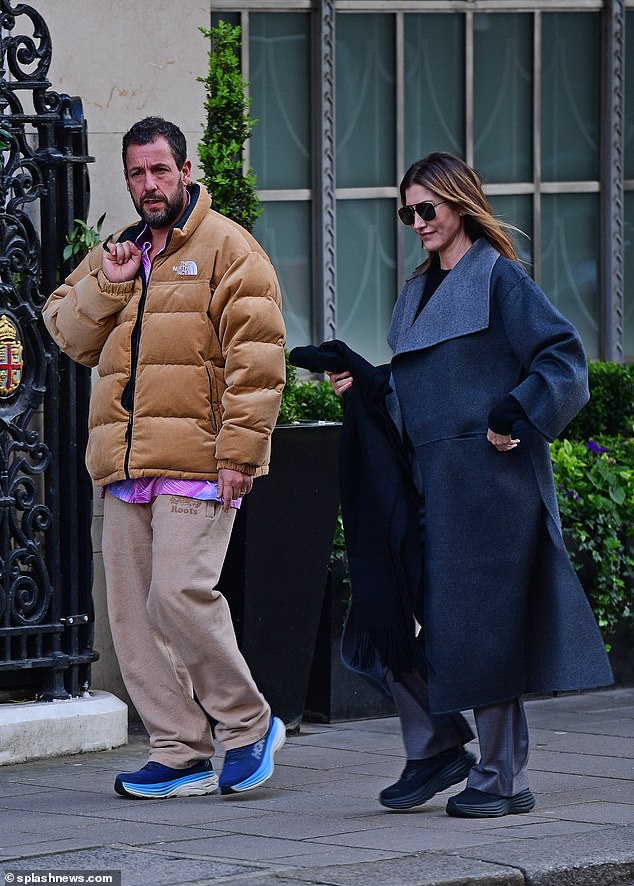 شوهد آدم ساندلر وزوجته جاكي وهما يستمتعان بنزهة ممتعة في وسط لندن يوم الاثنين.