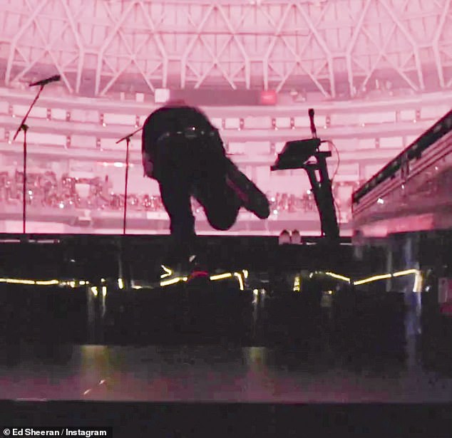 تعافى إد – الذي أظهر وشمه في سلسلة من الصور بدون قميص في وقت سابق من هذا الشهر – بسرعة وأطلق النار على المصور تحت المسرح وهو يبتسم عندما بدأ في العزف على جيتاره للجمهور الذي ينتظر أدائه.