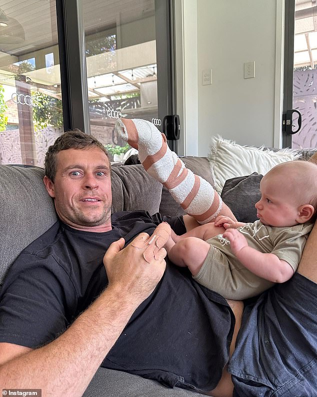 لقد أذى رايان غالاغر نفسه باستخدام طاحونة زاوية وشارك نتائج الإصابة الدموية على إنستغرام. في الصورة مع ابنه الرضيع