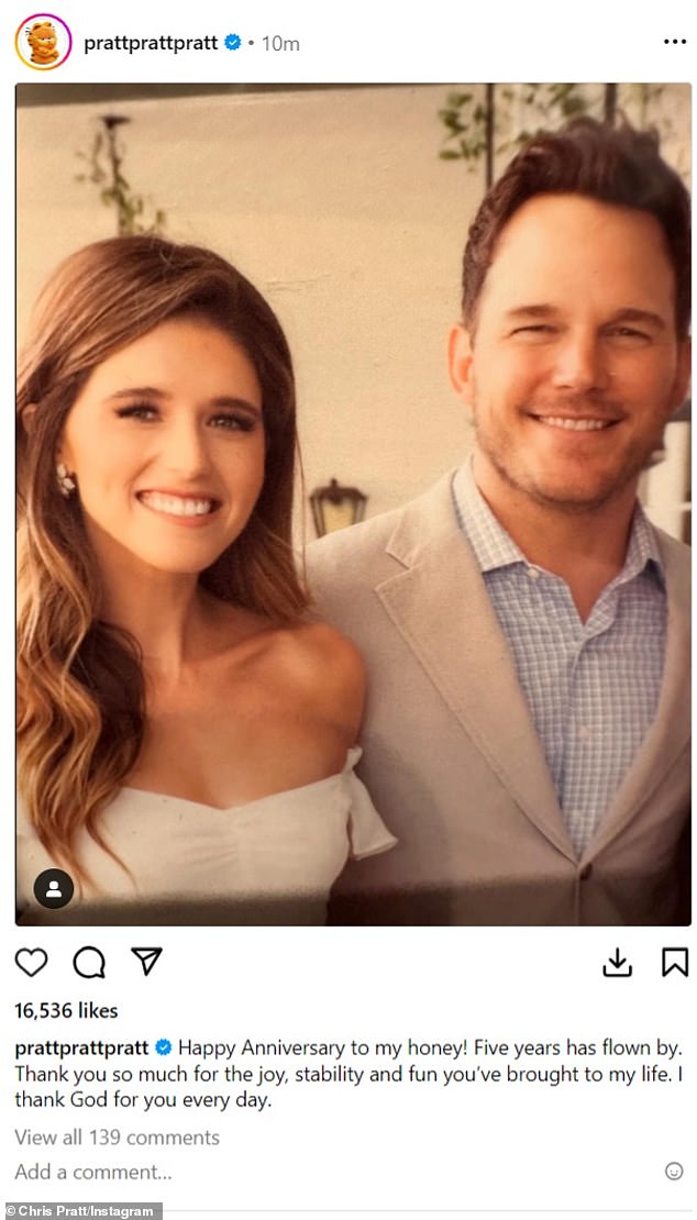 “ذكرى سنوية سعيدة لعزيزتي!” كتب برات في تعليقه. “لقد مرت خمس سنوات.”