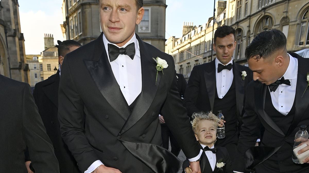 وصل آدم بيتي إلى حفل زفافه جنبًا إلى جنب مع ابنه الرائع جورج بينما يستعد للزواج من هولي رامزي في باث آبي يوم السبت.