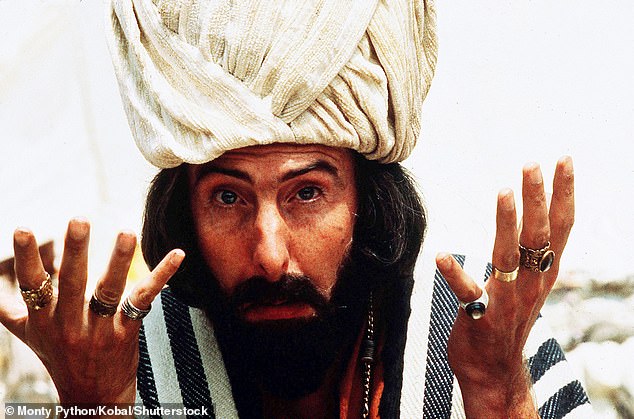 LR: إريك إيدل، مايكل بالين، جون كليز، جراهام تشابمان، تيري جيليام وتيري جونز في حياة مونتي بايثون لبريان