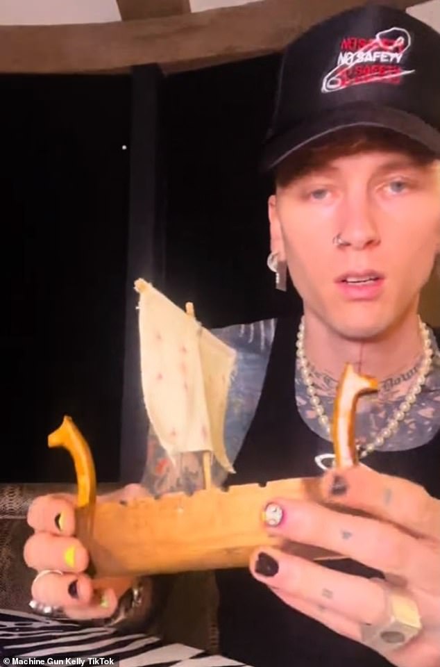 ابتكر ماشين غان كيلي، 34 عامًا، منحوتة خشبية لسفينة فايكنغ، وألمح إلى أنها كانت مخصصة لإجهاض ميغان فوكس، 38 عامًا.