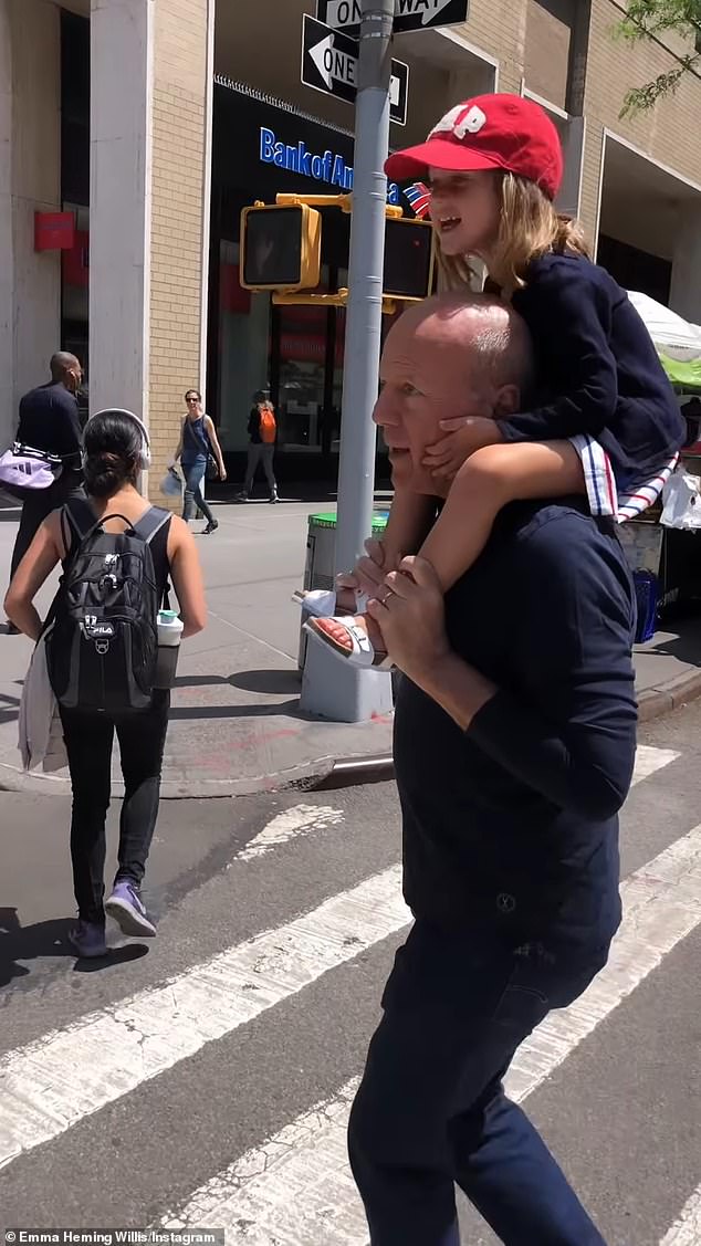 يوم الأحد، نشرت زوجة بروس ويليس الثانية، إيما هيمنج ويليس، مقطع فيديو جميلًا له وهو يحمل ابنتهما الصغرى إيفلين بن ويليس على كتفيه أثناء تجوله في مانهاتن.